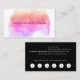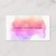 Chic watercolor business cards feature your name or company name layered on a blooming inkblot illustration in shades of pink, violet and golden coral. Add your full contact information to the back in white on black. Includes your custom loyalty offer (shown with "enjoy 20% off any service after five visits"), and six punchouts.