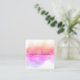 Chic watercolor business cards in a unique square format feature your name or company name layered on a blooming inkblot illustration in bright, colourful sunset hues of violet, pink, and golden coral. Add your full contact information to the back in white on black.