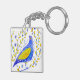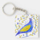 Modern Watercolor Blue and Yellow Bird Art Key Ring