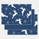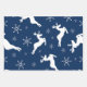 Modern Watercolor Blue Reindeer Snow Christmas Wrapping Paper Sheets