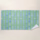 Modern Watercolor Blue Strokes on Green Beach Towel