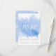 Modern abstract watercolor splash blue winter wedding RSVP reply/response card featuring a hand painted watercolor paint splash with texture in tones of blue, trees in white with snow , snowflakes and text in white and grey. This elegant and stylish casual wedding design is a completely customisable template perfect for your winter wedding. Note that this is only an image of watercolor and not real texture. For best results choose felt or other paper.
