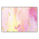 So trendy, this RSVP card features a pink watercolor background and faux gold lettering and confetti falling in the background.