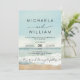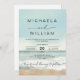 This beach wedding invitation design exudes coastal elegance with a serene watercolor ocean and sandy shore. The soft pastel hues create a romantic and peaceful atmosphere, perfect for seaside or destination weddings. Modern sans-serif typography paired with a delicate script font adds a contemporary yet timeless touch. The clean layout ensures all the essential details are easy to read, while the oceanic theme beautifully reflects the natural beauty of a beachside celebration. Ideal for couples seeking a chic and sophisticated way to invite guests to their special day by the sea. Available as printed cards or an instant digital download.