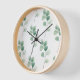 Modern Watercolor Eucalyptus Green Pattern Clock