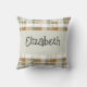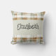 Modern plaid throw pillow featuring customisable name to complement your farmhouse decor. The sage green and brown fall colours will make any room cosy and warm.