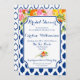 Trendy and modern - hand painted watercolor flowers - bright pink, orange, and yellow flower with a blue ikat backround. Matching items available at Noteworthy Printables