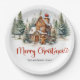 Classic Christmas plates with everlasting watercolor illustration at gingerbread house in winter pine forest with red holly berries and Christmas tree. Easily personalise the text or leave it blank.