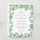 Modern watercolor greenery wedding invitation featuring wedding details inside a greenery frame.