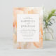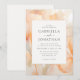 An modern romantic wedding invitation features a background of watercolor florals in shades of peach. Personalise all the of the important details such as bride and grooms names, wedding date, time and location.