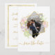 Wedding Save the Date card with delicate watercolor flowers and golden accents. Customise with photo on front and details on back