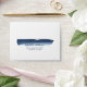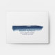 Modern and creative wedding RSVP self addressed envelope a simple design with a navy blue watercolor brushstroke with your names overlapping in a handwritten font, over a white background. Below is two lines of text for your return address. These unique and artistic envelopes are a great way to add a personal touch to your wedding invitation suite.