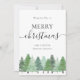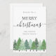 Share warm holiday wishes with clients, colleagues, and business partners with this corporate Christmas flat card template featuring original watercolor artwork by artist Catherine Sweetman. The elegant minimalist design showcases a snowy woodland pine and fir tree forest paired with sleek black elegant script and stylish modern typography on a crisp white background, creating a professional yet festive look.