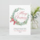 Modern Watercolor Wreath Bow Non Photo Christmas Holiday Card