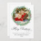 Modern Watercolor Wreath Bow Photo Christmas Holiday Card