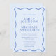 This modern wavy bright blue wedding invitation features a bold, flowing wavy border paired with a clean and elegant blue color palette. The combination of bright blue and soft blue creates a fresh, contemporary look that feels both joyful and refined.