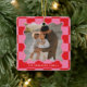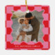 Modern minimal graphic check pattern red and pink wavy edge photo Christmas holiday home decor ornament. Bold on trend design. Part of a holiday collection.