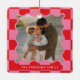 Modern wavy edge check minimal photo Christmas Ceramic Ornament