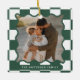 Modern wavy edge check minimal photo Christmas Ceramic Ornament
