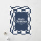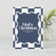 Modern wavy edge check navy blue photo Christmas Holiday Card