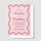 Modern Wavy Pink and Red Retro Squiggle Wedding Vellum Invitations