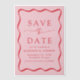 Announce your wedding in style with our Modern Wavy Frame vellum save the date cards! Featuring your names and wedding details elegantly framed by a bold red wavy border against a soft pink vellum background, this design creates a striking contrast that exudes charm and sophistication. Perfect for couples seeking a unique blend of modern trends and retro flair, these save the dates are as memorable as your love story. Personalise this design to share the excitement of your special day while giving your guests a keepsake they'll treasure. Set the tone for a celebration filled with love and style!