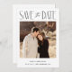 A modern, yet simple wedding save the date card featuring your favourite photo on the front. Add more info, plus a wedding website QR code on the back.