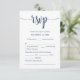 This is the beautiful Modern, Calligraphy, Romantic RSVP (Respond) Enclosure Card, in classy navy blue theme, where you can edit, change colour and format it as per your design requirement, with meal options, reserved seats, number attending and song request option.
