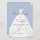 Modern Wedding Dress on Blue Bridal Brunch Invitation