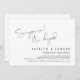 This is the wedding elopement party invitation card, with minimalism / minimalist black script design (Surprise, we eloped)