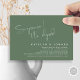 Announce and share your happily ever after in style with our modern theme design (Surprise! We Eloped) wedding elopement celebration invitation card, in forest sage green. It is ideal for couples who have decided to celebrate their best day. With its sophisticated yet playful design, this invitation is sure to set the tone for an unforgettable event. The invitation card features a modern and minimalist script design theme, adding a touch of timeless elegance to your celebration. Designed by TeeshaDerrick