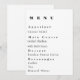 A minimalist and elegant wedding menu card design featuring clean typography and a refined serif style. Perfect for modern couples who love timeless, simple, and sophisticated wedding stationery.