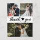 Elegant modern wedding thank you postcard features 3 wedding photos in a collage layout, with "thank you" calligraphy script in black on white background. Personalise with your names, and add a custom thank you message and signature to the back.