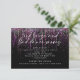 Wedding Reception | Modern Abstract Reception Wedding After Party - Bold edgy magenta sparkly garland cascades down the page, in handwritten calligraphy is "food booze and bad dance moves" - the rest of the text is simple and clean - all on a black background. Casual Fun Edgy wedding stationery.