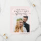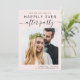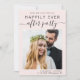 Modern and chic light pink elopement or small wedding announcement with a reception save the date featuring your wedding day photo and "Save The Date For Our Happily Ever After Party" in a mix of simple typography and trendy script with swashes. Under your photo, add your first names and reception/party date and location; on the reverse, personalise your wedding announcement and reception information in more detail.