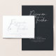 Modern classy typography bold wedding Reserva la Fecha card. With modern, elegant typography and striped backer design. Colours can be customised. Modern elegant gold and silver foil script text.