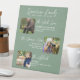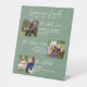 Honour family, friends or pets and bring a smile to wedding guests, with this fun wedding day tabletop pedestal bar sign print announcing your selected signature drinks. Modern customisable fonts on basil green background. Add your favourite family member photos to create a truly unique and memorable wedding keepsake.