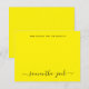 Modern Wedding Stylish Script Elegant Minimalist Note Card in gender neutral yellow typo with couple family names in handwritten calligraphy and personalised text in standard classic sans serif font. Perfect for rspv and wedding invitations.