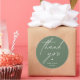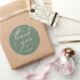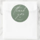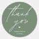 Modern Wedding minimalist Thank You Gifts Classic favor Round Sticker, in romantic script, cute little heart, with bride and groom signature and wedding date, in sage green theme.