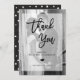 This modern and stylish wedding thank you card features your own photo covering the background completely. A sheer white overlay features trendy black script typography.