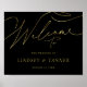 Fancy Wedding Welcome poster with modern FAUX gold foil script text. The words "Welcome to" are IMAGES produced to simulate a metallic foil finish, but it is printed in flat ink and cannot be edited. It can be resized to fit your poster size, and all other text can be fully edited. Pick your size (shown on 10 x 8) and customize the text, fonts, colors and layout. Recommended semi-gloss or premium gloss finish.