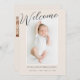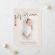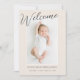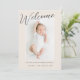 Modern Welcome baby Photo Birth Announcement. Multi-photo Birth Announcement Card with place for a feature baby photo on the front and three smaller photos on the back. Minimal modern design with script reading Welcome on the front of the birth announcement.