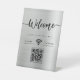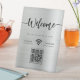 Modern Welcome Script WIFI QR Code Silver Metal Pedestal Sign