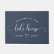 Modern, chic brush script reading WELCOME TO OUR LAKE HOUSE in a trendy typography driven design. Great custom lake house decor for your home away from home. Both romantic and stylish, our dusty navy blue door mat features a sweet canoe illustration between your location and the year established.