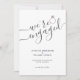 Simple and modern "we're engaged" engagement announcement card with hand-painted watercolor wedding ring illustration and couples photo in the back
