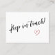 Keep your friends and family up to date with your new address using these simple, elegant enclosure cards. You can insert them into your mailings or share them in person, as you run into people you need to notify. When you want a distinctive method for letting your tribe know how to find you, this card is versatile enough for anyone. It features pretty typography graphics that read "We've Moved" on the front and "Keep in touch!" on the back, using a modern, casual, handwritten script font. I've placed a little red watercolor heart outline on each side of the card adding a distinctive touch. Use the template fields to add all your own details to personalise this design for your own use. If you'd like to change the pretty, simple sans-serif font I used for the editable text, or wish to move some lines elsewhere, click the link to customise the card further. The black type was placed over an editable white background; you can change the background to any colour you wish. // 90 // Designed by Melody Watson for Paper Muserie.