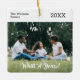 Create your own custom Christmas ornament featuring your photo with "What A Year!" in a white handwritten script font across its bottom. At the top above your image is a minimal white band with your name and the year in a black serif font. Personalise it in the sidebar.