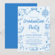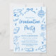 Modern Whimsical Hand Drawn Blue Graduation Party Invitation
