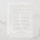 A modern minimalist ampersand wedding invitation features a monochromatic off white colour palette with real silver foil typography. Personalise all the important details including bride and groom name, wedding date and location. The reverse side is coordinated in black.