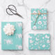 Modern White and Aqua Flowers and Leaves Wrapping Paper Sheet